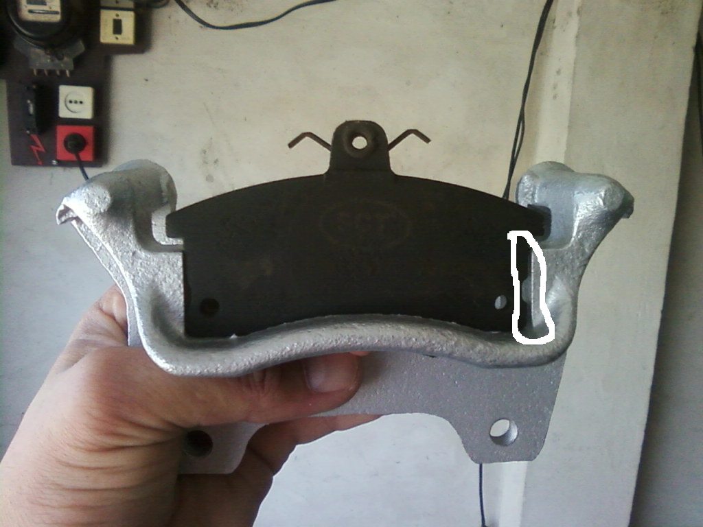 на фото щель 1мм может чуть больше , на перед и зад у меня колодки на скобе впритык , а тут болтаются. Скоба на фото под диск 257 , на скобе выработки почти нет , так должно быть ???