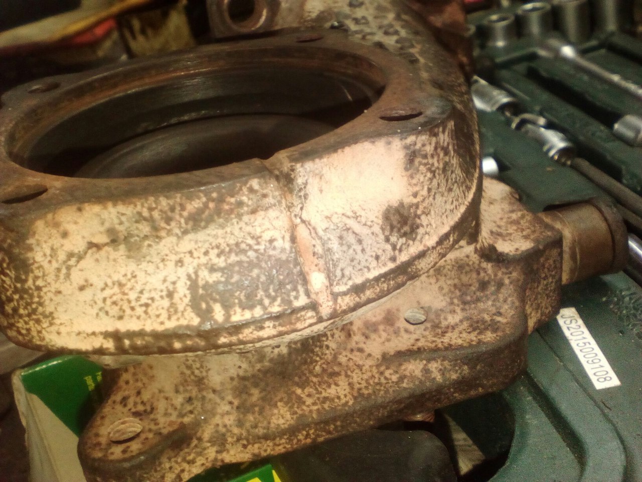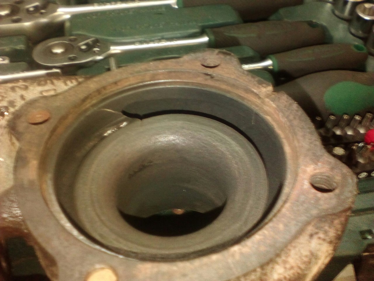Но не это главное, гарячая часть оказалась капец какая потресканная, провереный сварщик (брат Жеки, спасибо) сказал, что заварить качественно эту турбину не реально, трещина пошла по всей улитке по круку, трещина на приемном фланце, трещина у клапана вестгейта и еще пару трещин в других местах.