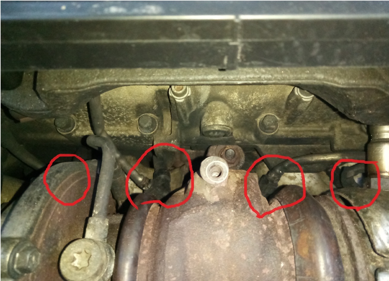 добрый день! Привез отцу фиорино с Германии, машина в руках только 1 неделю. Обнаружился запах выхлопа в салоне, сняв экраны турбины показалось что больше всего коптит из форсунок или свечей накала( на фото обведено) я так и не понял что это. После запуска из этих мест подымается клубок дыма. Подскажите, как устранить? Я думаю что без снятия улитки ничего не выйдет и коль она уже будет демонтирована то поменять заодно и прокладку между турбиной и коллектором.