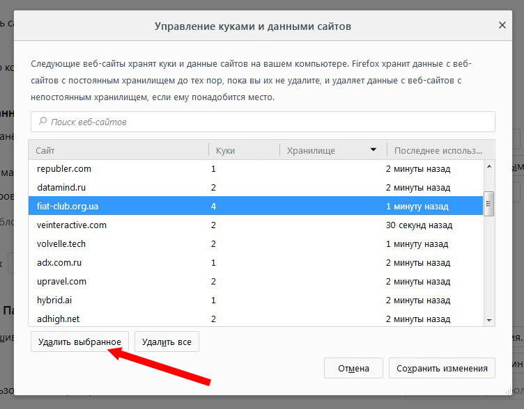 Александр Васильевич, в хроме можно вычистить куки только одного сайта, скорее всего и в мозиле можно, поищите
