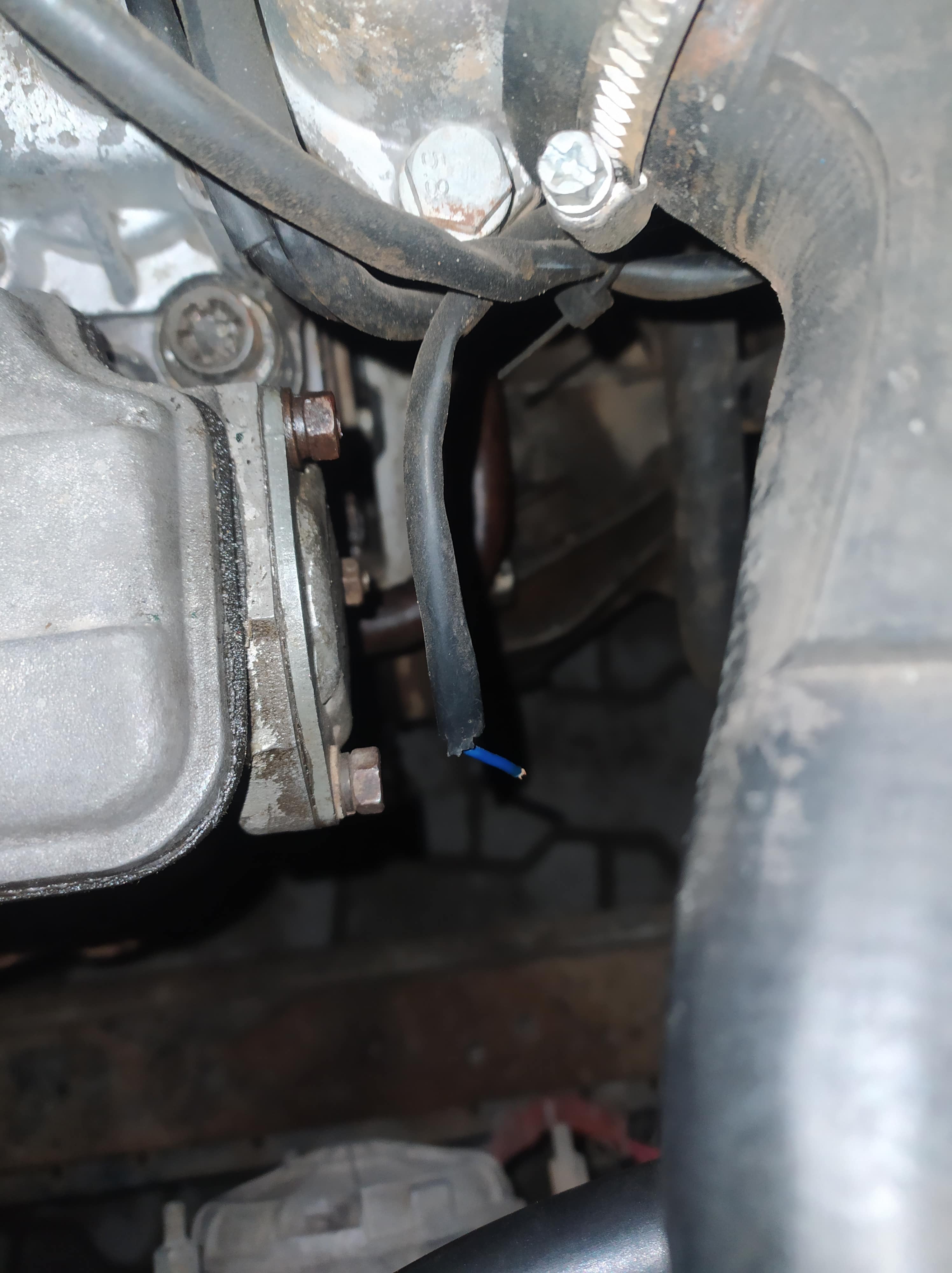 По поводу вниз свисающего проводка--похоже что там оторвана фишка--а проводок для проверки СО мотора(в этой машине это устанавливают по В).Т.есть тестером на В меряешь напряжение.Плюс тестера на провод,а минус на массу.